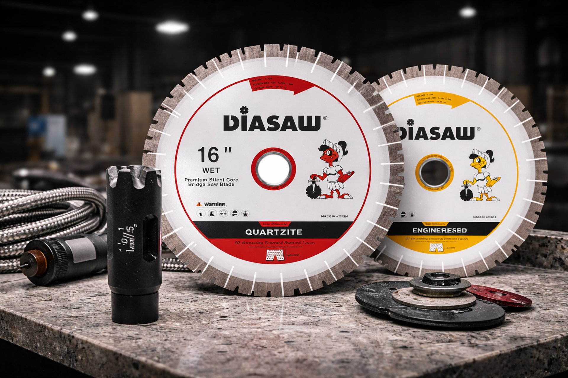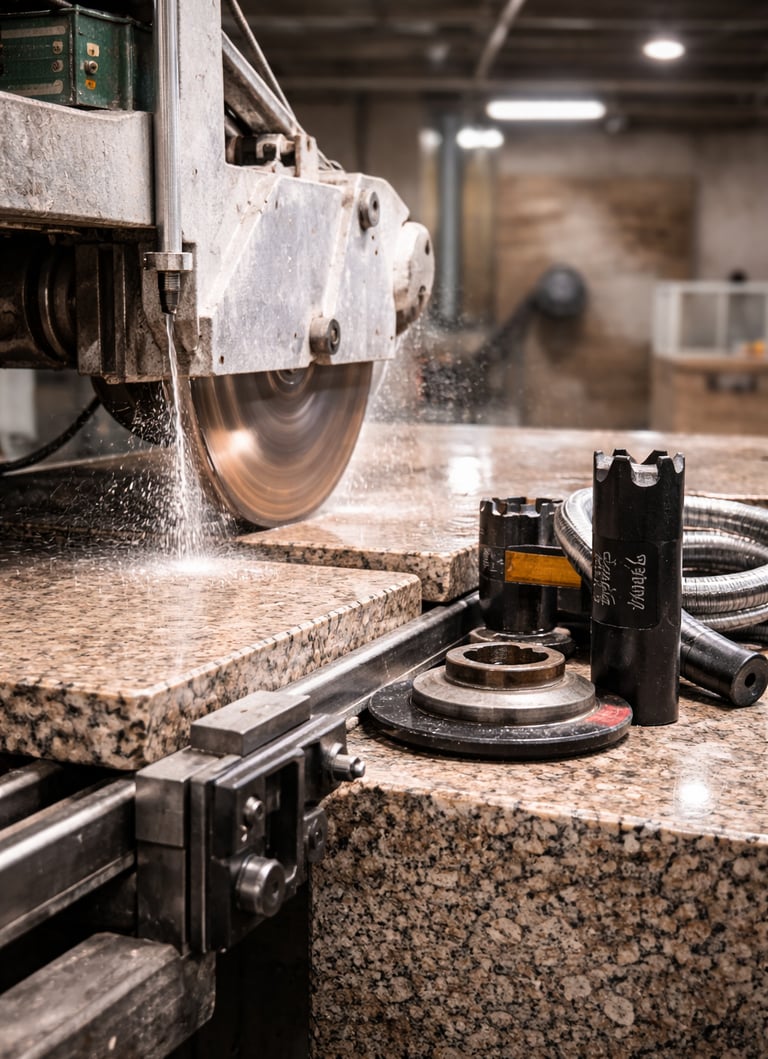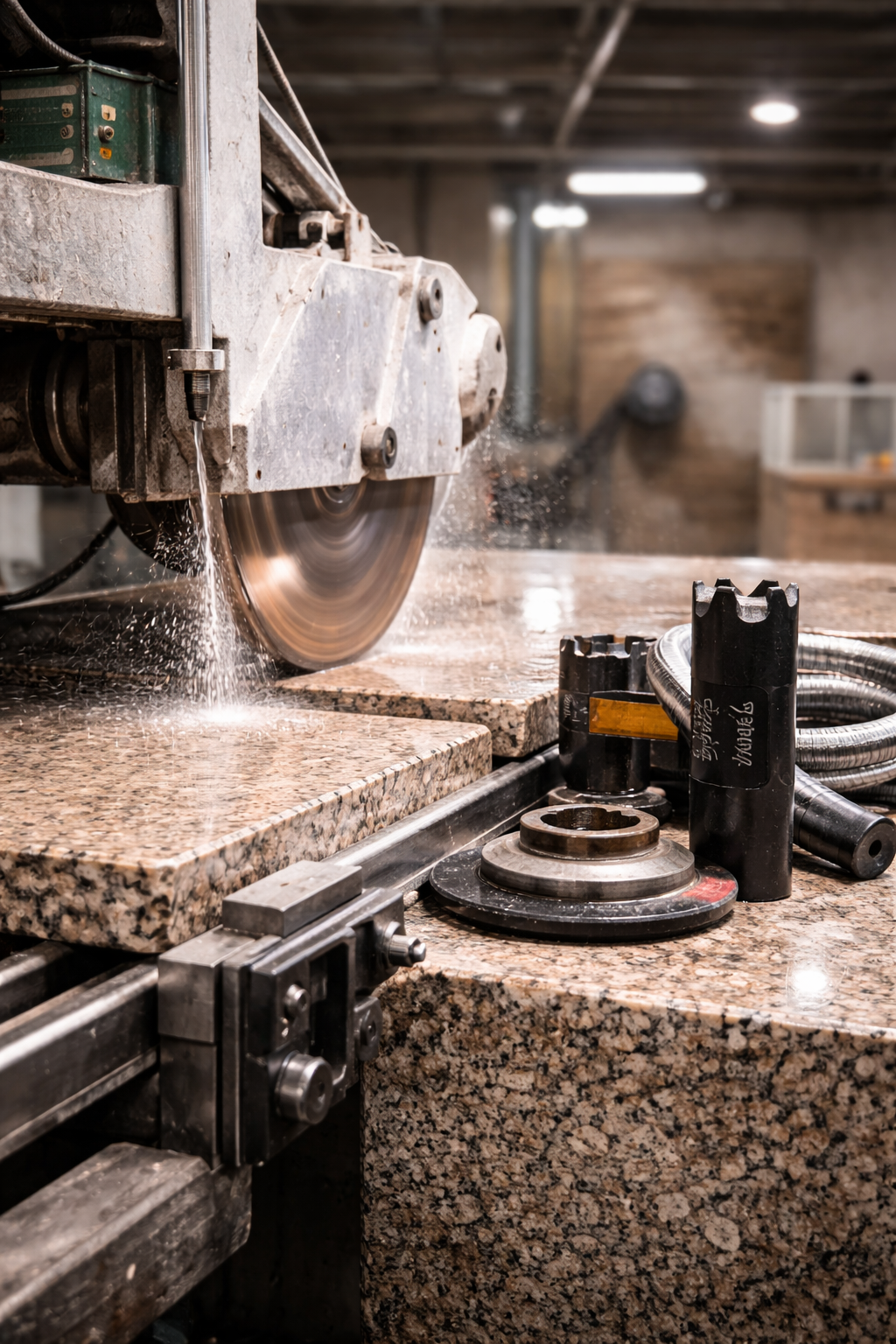 High-performance diamond tools designed specifically for stone shops working with granite, quartz, and engineered surfaces.